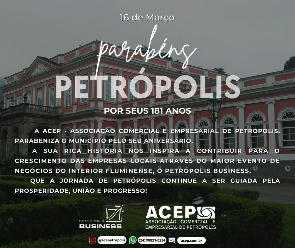 ACEP celebra os 181 anos de Petrópolis com iniciativas de apoio e desenvolvimento da economia regional!