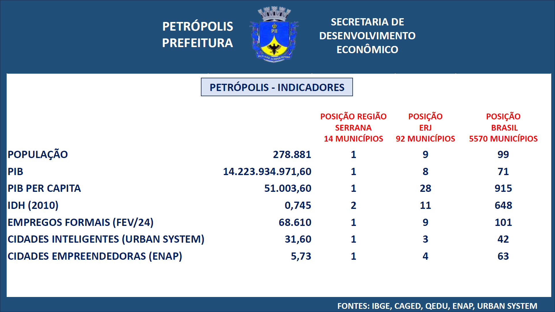 Dados fornecidos pela Prefeitura de Petrópolis através da Secretaria de Desenvolvimento Econômico